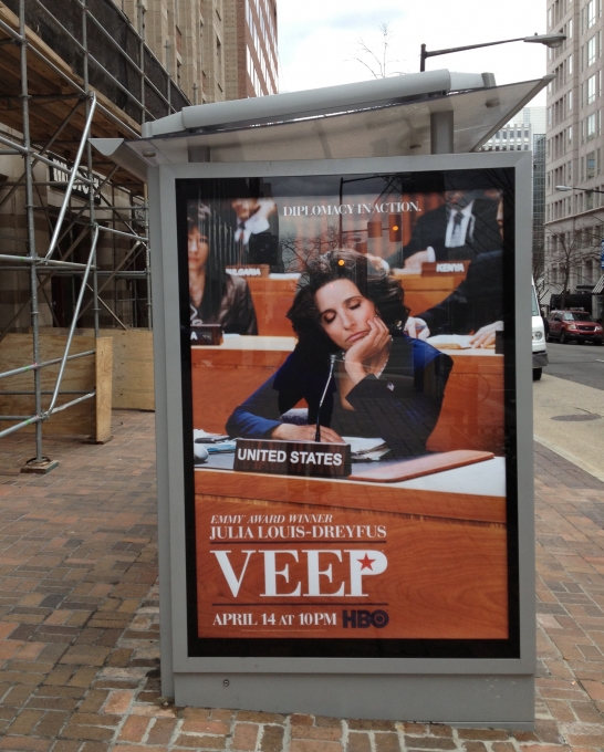 The VEEP Season 2 promo on a bus kiosk in DC. I am in the print as a U.N. Rep.